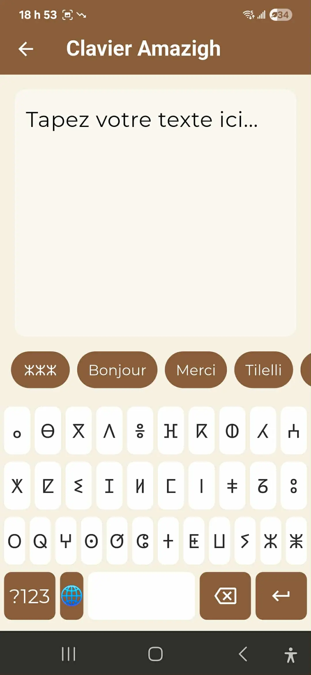 L'expression de la langue amazighe à l'ère numérique se heurte trop souvent à un obstacle majeur : un accès difficile, incomplet ou non intuitif aux caractères Tifinagh sur les appareils standards. TILELLI lève cette barrière en intégrant son propre clavier virtuel, conçu spécifiquement pour la communauté.