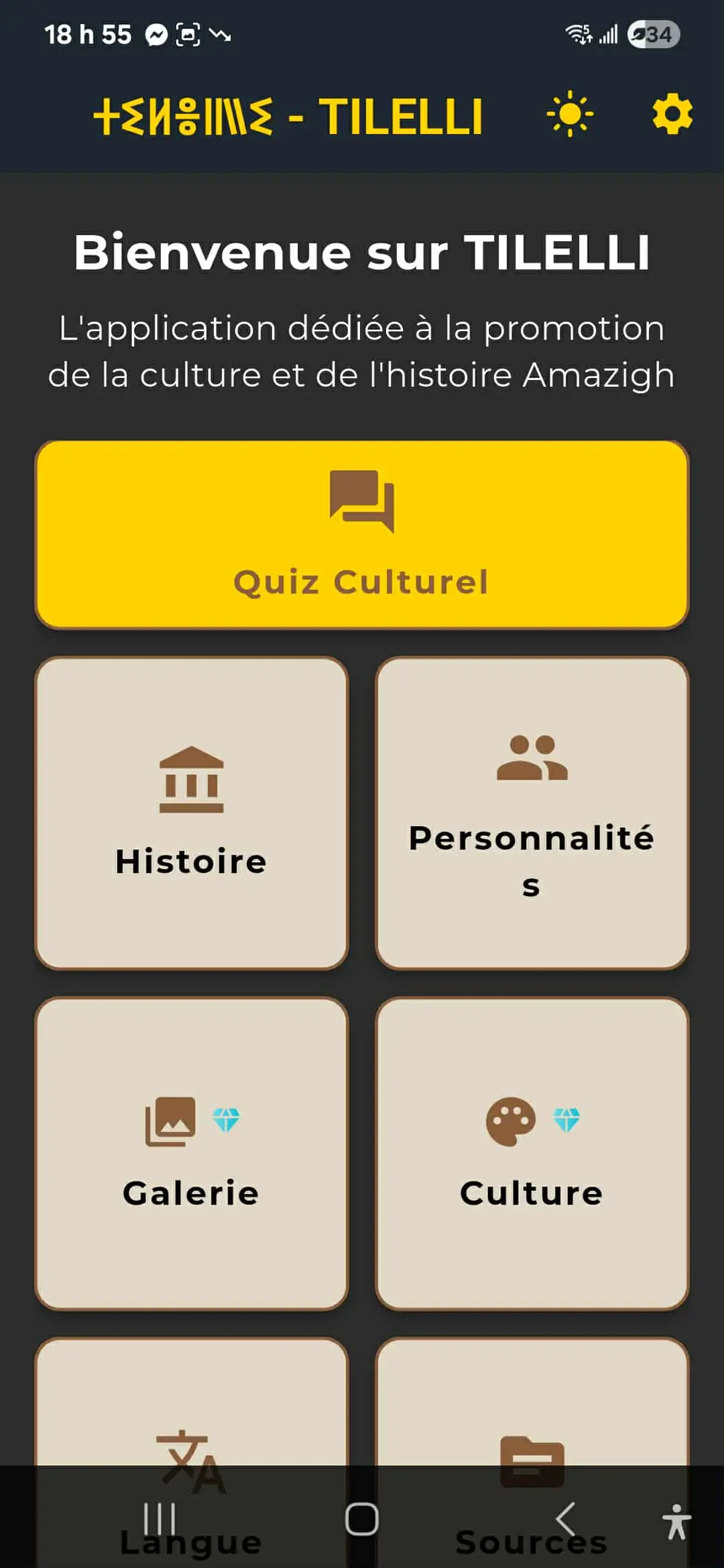 TILELLI est une application mobile dédiée à la promotion de la culture et de l’histoire Amazigh. Elle propose une expérience immersive, éducative et interactive pour explorer cet univers fascinant.